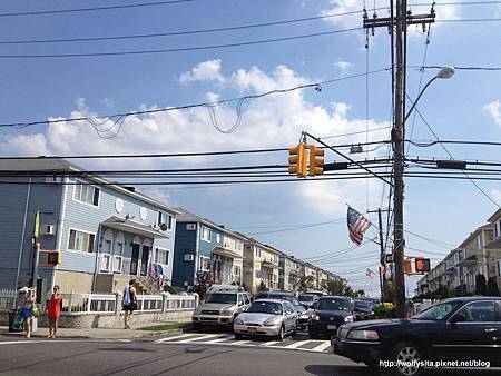 走出地鐵需要經過一小段住宅區才能到海邊,可以發現這邊還都是有很多電線桿的小鎮&可愛小房。