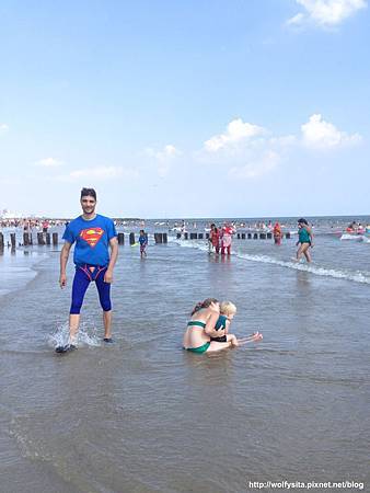 海邊的正妹大部份都是辣媽耶!但這位超人爸爸....