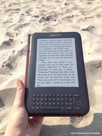 <<今天幫大家體驗 Kindle 在海邊陽光底下的威力!超清楚不會反光很優秀!