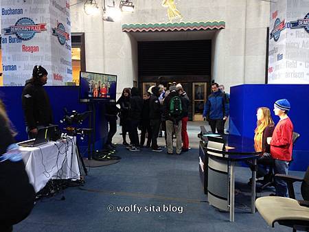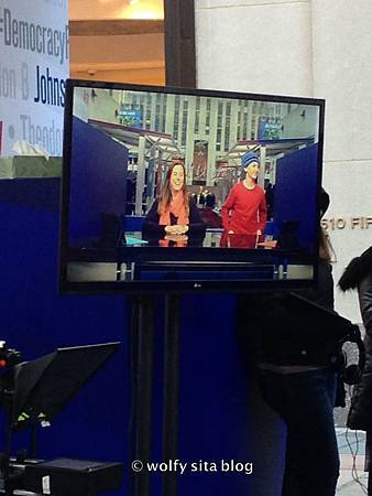 我們可以看到廣場中間,有一區讓居民遊客體驗 "主播" 播報新聞的快感~