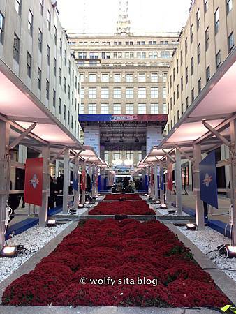 整個洛克斐勒中心變成美國國旗紅、藍、白三色為主的廣場,